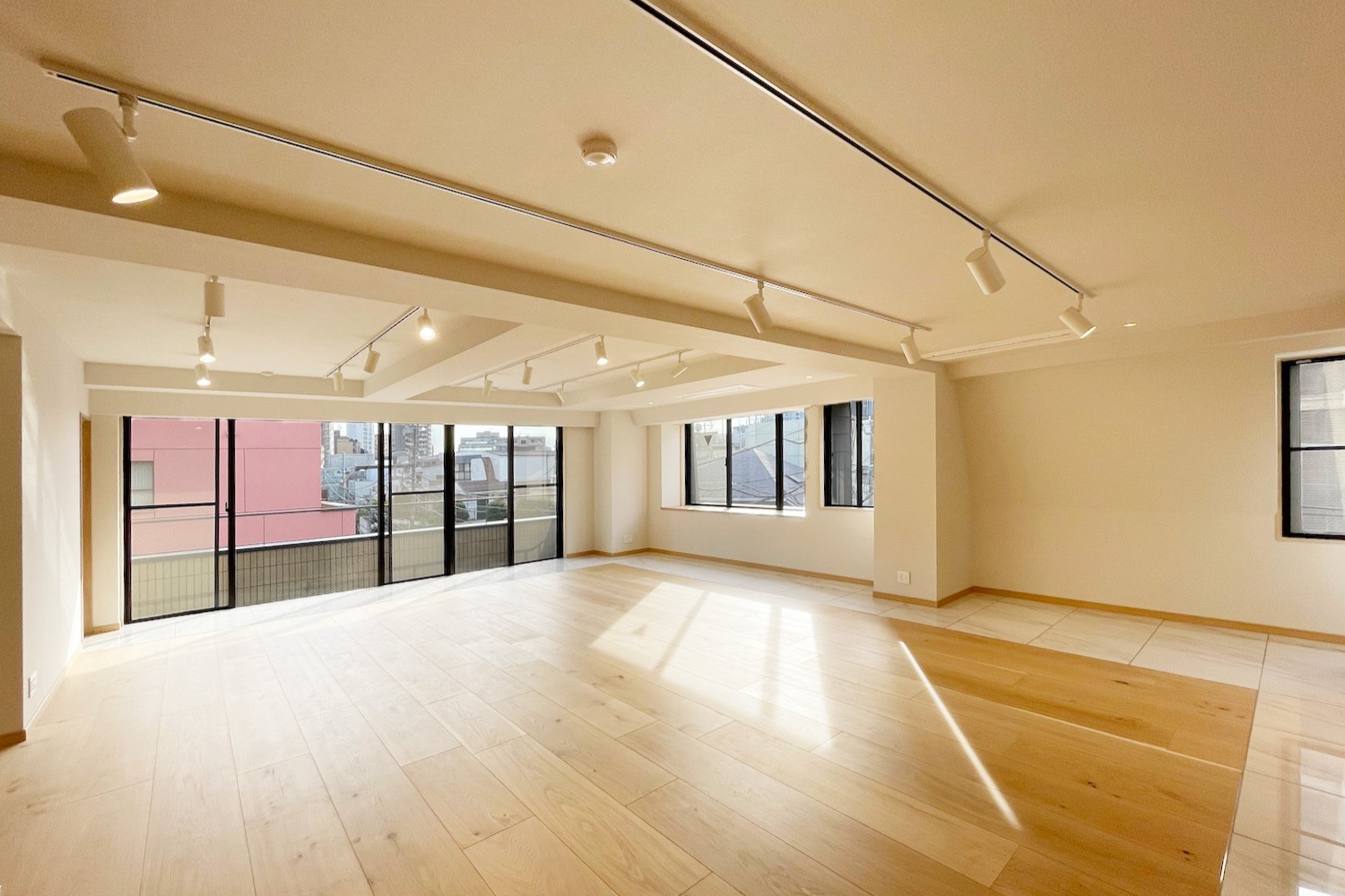 本プロジェクトでは、2・3階部分を占めた旧オーナーの2世帯住宅を2戸の専用住宅に一新することで、低層高級賃貸住宅に再生。各階に1住戸のみの配置で各住戸3面に窓があり、開放感あふれる建物の特徴を活かして「ニューヨーク&西海岸」を内装テーマとし企画を進めた。