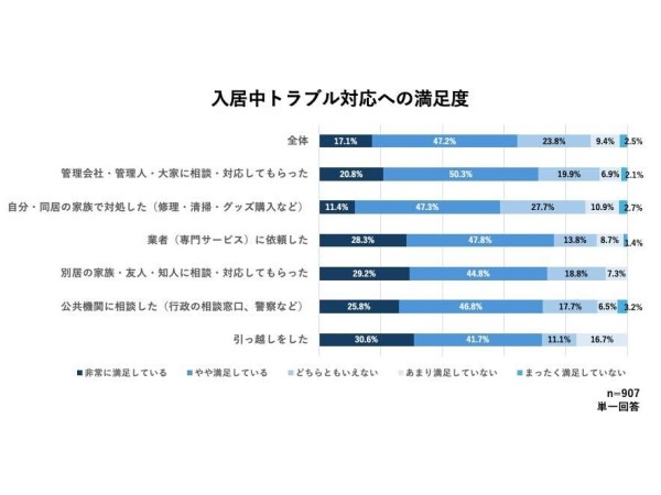 ・最多は「管理会社・管理人・大家に相談・対応してもらった」、自分での対処と対処後の満足度に差も