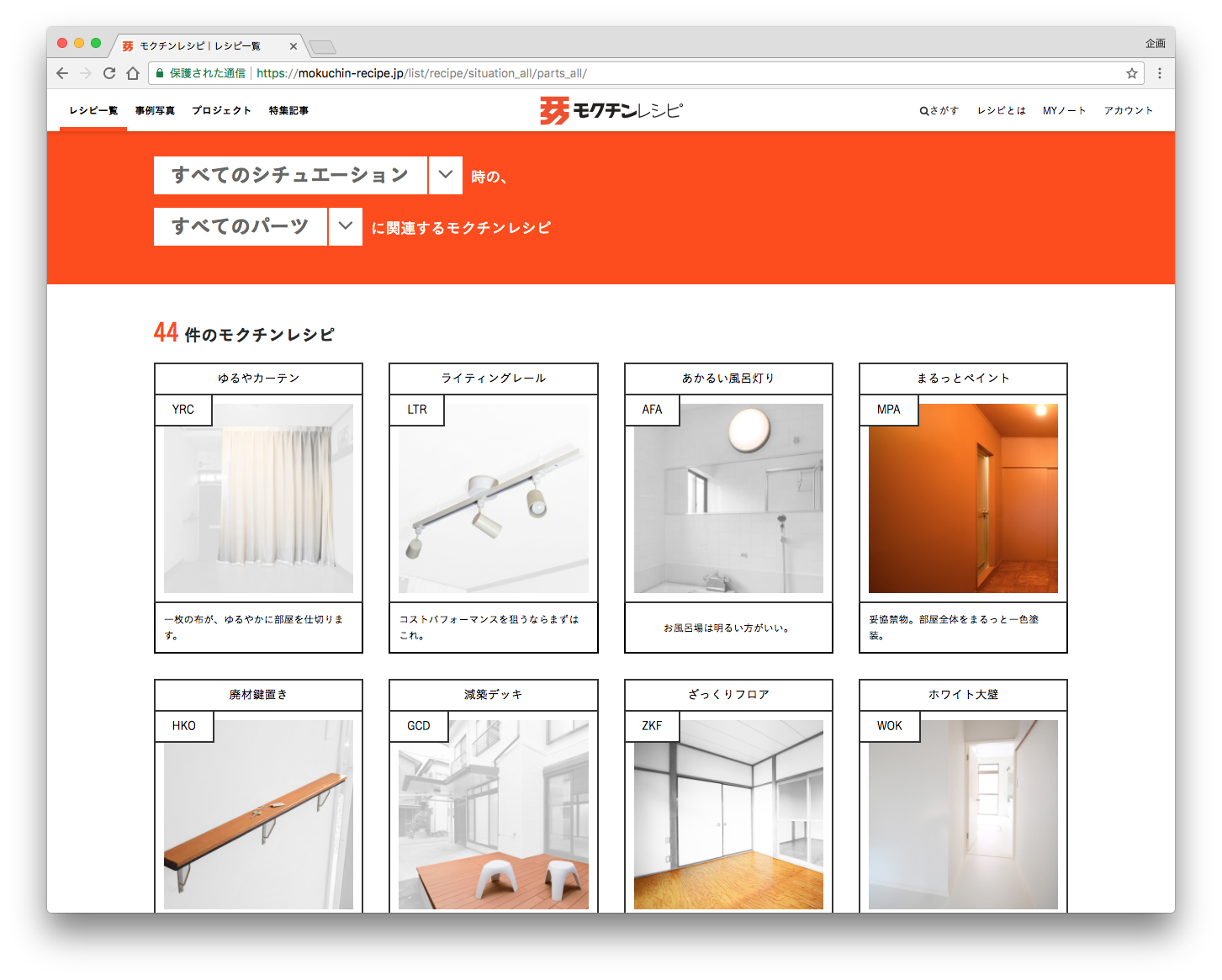 モクチンレシピに集められている改修アイディアは、基本的にアパートの家主や不動産管理会社向けに提案・提供されていて、ドアや窓、壁など部分的に改修できるアイディアから、間取りを変更したり、耐震補強、断熱性向上に関係するものまでさまざま。やや大がかりな施工が必要になるレシピもあるが、電球を取り替えるといったDIYでもできてしまう簡単なレベルのものまで、50件近いレシピを事例写真付きで見ることができる。