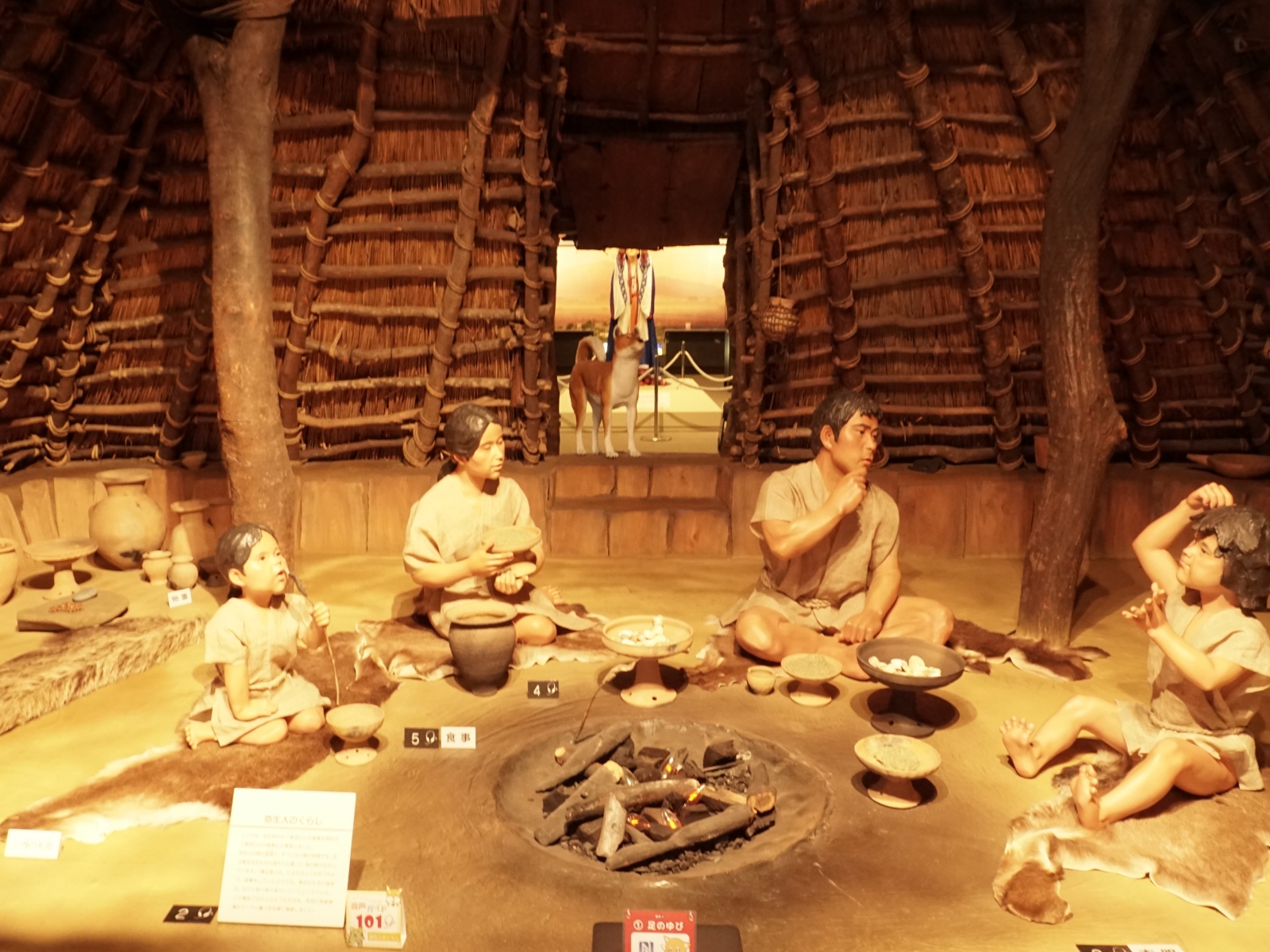「魏志倭人伝には、高杯を食器として手づかみで食事を取り、生野菜を食べる倭人(当時の弥生人)の姿が書かれます。当館では遺跡からみつかる建物の跡のほか、土器や動物・魚の骨などの遺物から、当時のくらしをジオラマに再現していますので、ご覧ください。また、弥生時代の生活は、自給自足の生活を想像してみると、見えてくるかもしれません。春には山菜をつみ、田起こしをして稲を植えたでしょう。夏には稲の世話をしつつ漁に出る。秋には収穫を祝い、冬には保存食を食べながら、道具の手入れなどをしつつ春に備える。冬眠しないシカやイノシシを狩りにいくこともあったでしょう。基本的には江戸時代ぐらいまでの農村や山村の生活と、大きな違いはないと考えられます」と、教えてくれた。