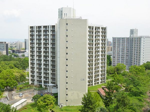「千里竹見台団地26号棟」は、14階建て・全221住戸という全国でも数少ない高層タイプのスターハウスだ。