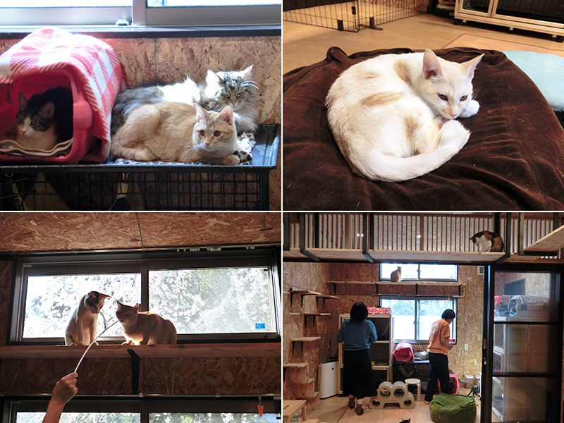 シェルターの猫と触れ合えるのは、基本的に宿泊客と、事前に予約した里親希望の人のみ。夜8時から朝10時までは、シェルターのカーテンを閉めて猫を休ませるというルールを貫く。オープン当初は、無料でいつでも猫と触れ合える施設と勘違いされて、困ったことがあるという。