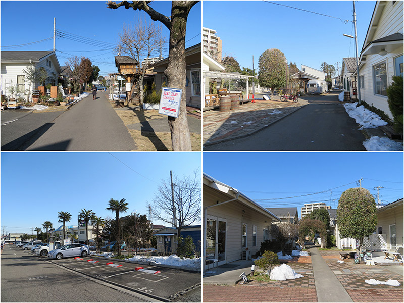 約2万5,000m2(7,500坪)の広大な敷地には平屋の一戸建てが合計79棟。中心となっているのは米軍ハウスと呼ばれる、かつての駐留米軍のための基地外の住宅23棟で、三角屋根と白い板壁が特徴である。その他の住宅も米軍ハウスに合わせたデザインで統一されているため、全体としてそこだけが別世界になっているのである。建物だけではない。隣家と距離をとったゆったりとした配置、柵などのない開放的で緑の多い雰囲気も日本の一般的な住宅地では見られないものだ。