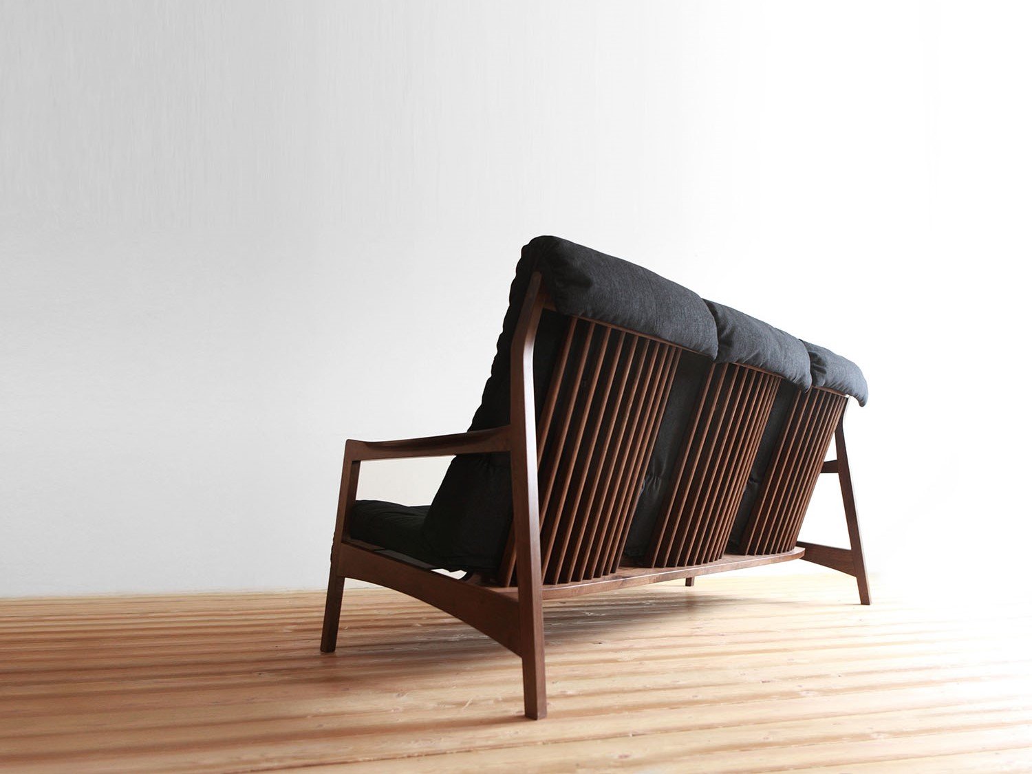 酒見さんの言葉どおり、もともと大量生産で繁栄した大川の主力商品は「箱もの」。しかし、生活スタイルや家族形態の変化により、インテリアショップで売れるのは「脚もの」といわれる椅子やテーブル、ソファーになっていた。過渡期を乗り越えた会社や新規参入の会社のほとんどが、ニーズに応えるべく、脚もの商品の開発・製造に取りかかったが、業界的には新参者という立場。箱ものと脚ものでは必要になる技術が全く異なる上に、大量生産ではない“オリジナリティー”という点で苦慮した会社も少なからずいたようだ。各社が工夫を凝らし、なんとか大川の家具生産を再起させようと、各々でもがいていた時期ではなかっただろうか。