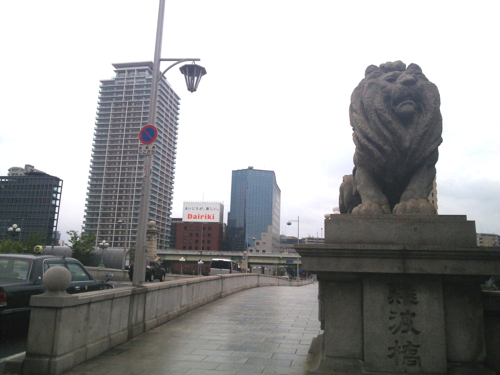ライオンの像で知られるのは、なにわの三大橋のひとつ、難波橋。橋の北詰と南詰には狛犬のように口を開けた阿形と、口を閉じた吽形の一対が向かい合わせになっているが、これは難波橋から16の橋が見えたことに由来する。4×4=16(ししじゅうろく)にかけた洒落になっているのだ。
