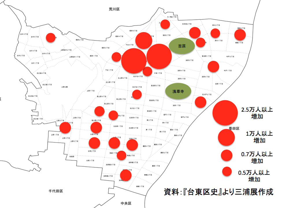 このように台東区でも、江戸時代はまだ栄えていたなかった地域に新しい人口が流入したのである。