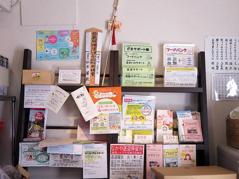 やり始めているのは困っている人たちの相談窓口同士の連携だ。「多くのNPOや活動している人たちは目の前のことで手一杯。自分たちがやっていることをPRしたり、他の団体と連携する余裕がありません。でも、母子家庭で食に、住宅に困っているなら、塾に行けない、制服が買えない悩みも抱えているはず。そんな人にボランティアが教えてくれる塾、安く制服を買える、もらえる情報を提供できればとワンエイドのオフィス内には県央エリアの様々な団体のパンフレットを置いています」。