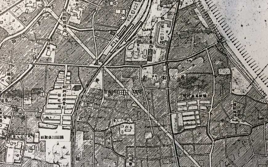 しかし、昔の地図を見ていて、ひとつだけ発見があった。鐘淵紡績の近くに同社の住宅地が2箇所あるのだ。ネットで調べると「多くの女工も暮していて、付近の酒屋、八百屋などと結婚した人も多数いたという。鐘紡を中心に一種独特の一族意識があり、社宅の電気・ガス・水道は鐘紡が供給した。商店の顧客も鐘紡の従業員など工場労働者が中心で、さながら『鐘紡城下町』の様相を呈していた」という。他の史料を見ても、紡績会社の中でも鐘淵紡績は比較的労働者の人権を重視する会社だったようだ。