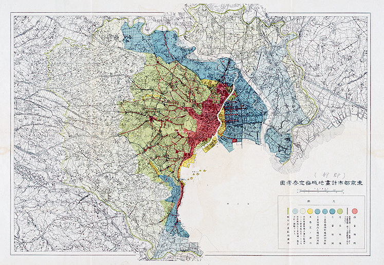 1919年には都市計画法が制定された。東京都市計画区域内の用途地域については、1923年8月に「山の手の住居地域」「下町の商業地域」「江東の工業地域」の指定案がまとまり、認可を受けるばかりとなっていた。