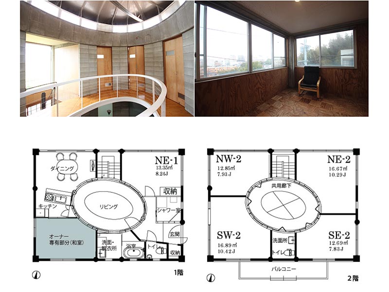 ちなみに個人的に興味を引かれたのは当初の計画にあった緑化環境、簡単に言うと壁面・屋上緑化が今は行われていないという点。なぜ?と聞いたところ、植物の力で引き違いサッシが動かない、アルミ外壁の裏に侵入する等で機能不全になったためだそうで、自然は人間が考えているほど優しくはなかったとか。実験にはたまに失敗もある。そんな人間味もこの物件の魅力なのだろうと思った。