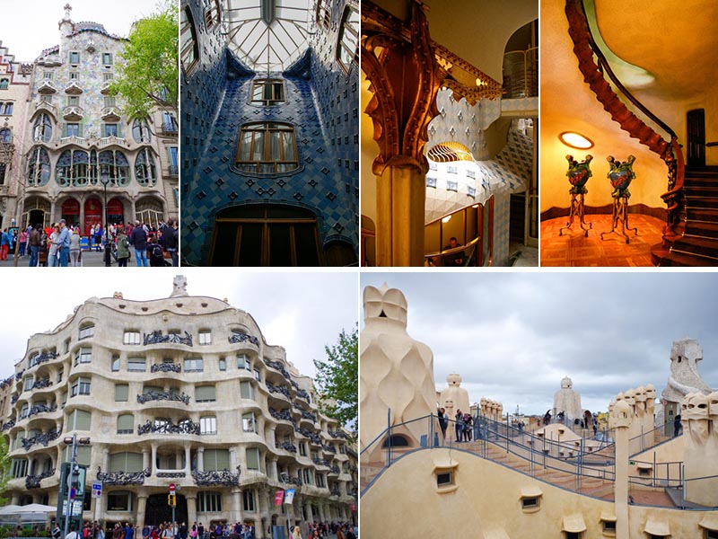 「カサ・バトリョ」(1906年改修)は既存の建物をガウディの設計で改修した住宅で、現在は一般公開されている。外観も内側も、独特の有機的な造形で埋め尽くされた建物だ。