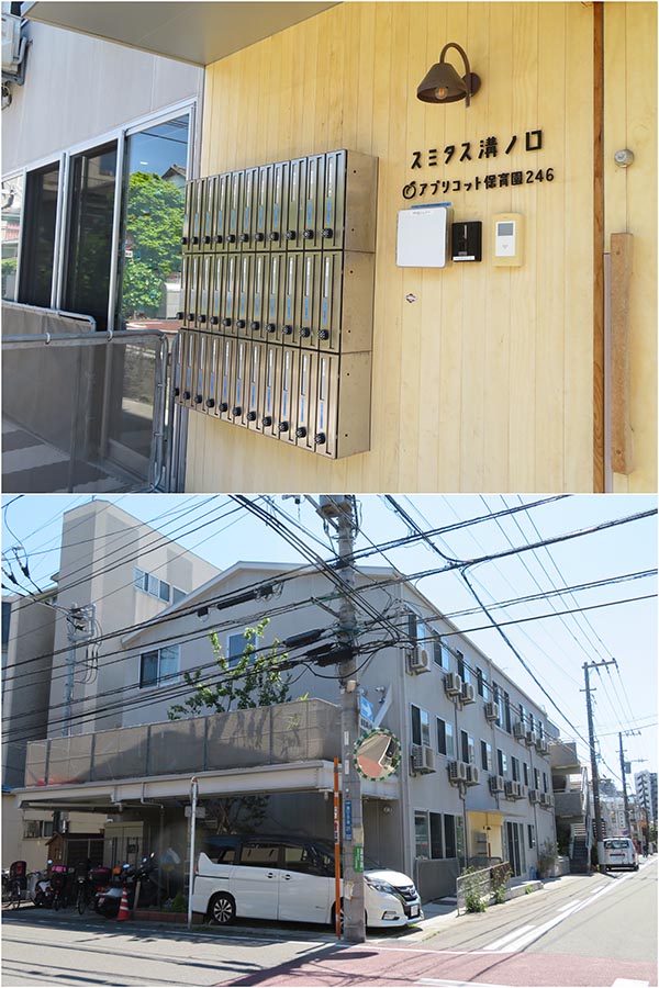 スミタス溝ノ口とアプリコット保育園246は玄関を共有しており、なんとなくではあるが、互いの雰囲気を感じられる作り。「この形なら一人暮らしの良さと、誰かと住むという温かさを共存させられるのではないかと考えたのです」。