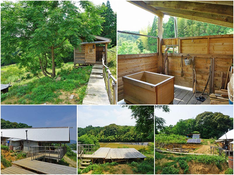 ▲こちらが高岡さんご一家が暮らす自宅スペース。「予算の都合で建物は基礎だけで引き渡してもらい、内装などはすべて教えてもらいながら自分たちでつくりました。直し方も教えてもらったから、壊れても怖くない(笑)」。廃棄予定の畳を畳店から分けてもらい、土間はワークショップを開催して参加者みんなで叩いて作った。なんと壁面の断熱材にも廃棄畳を使っているそうで、冬はとても暖かく快適に過ごせるという。「冷凍庫はあったら便利かなとは思いますが、氷を詰めたクーラボックスで代用しています。野菜は外の菜園で自給自足、マヨネーズやケチャップなどは基本的に手作りです」と博子さん。宿泊スペースでは照明を一切使用せずランプの炎だけが光源となるが、子どもたちの勉強時にはどうしても明りが必要になるため『自宅スペース』では太陽光パネルの自家発電で裸電球を灯している。お風呂は昔懐かしい五右衛門風呂だ強迫的にこの生活を続けるつもりはない、子どもたちの故郷を残したい