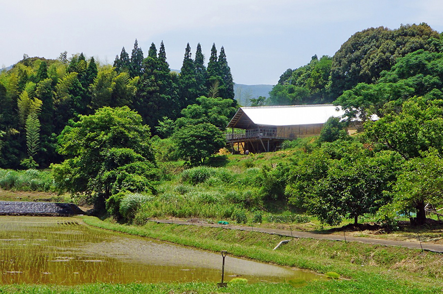 ▲ヤギの一家と共にアンプラグドな生活を送っている高岡盛志郎さん・博子さんご夫妻(42)。カリフォルニアで6年、佐賀市内で6年生活し、2018年3月、ここ有田に『TIMERの宿』をオープンした。宿名の『TIMER』は佐賀市内で経営していたレストランの店名に由来している。「ここは“自然の音”を感じる場所。段々畑の中腹に位置しているんですが、ものすごい高台で暮らしている感じ。木や鳥が飛ぶ様子を上から見下ろすこともできるんです」と博子さん。宿泊は5人まで可能。ヤギたちは庭の“草取り係”として活躍している実は取材に訪れる前、筆者は勝手に「超ストイックなナチュラリストご夫妻」の姿を想像していたのだが、出迎えてくれたお二人の優しい笑顔を見て一気に緊張がほぐれた。