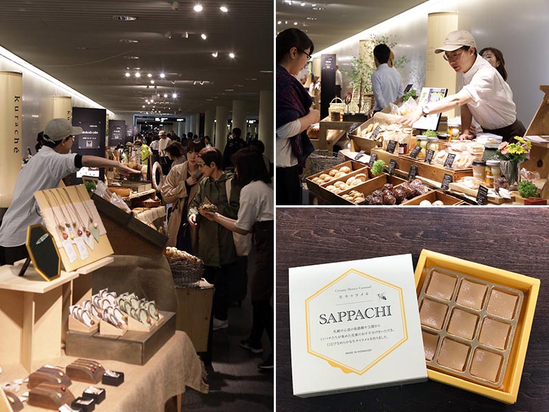 「マルシェだけでなく、北海道の特産をつかった商品開発もはじめました。札幌の都心で採蜜された希少な蜂蜜をつかってつくった『さっぱち蜂蜜生キャラメル』も企画から生まれた商品です」と宮永さん。
