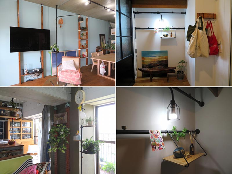 その後もユーザーからの声に応え、屋外でも使えるアイアンタイプ、壁に細いピンを差すことで壁に棚や長押上のスペースが作れるタイプなどラブリコの商品ラインナップは徐々に増加。さまざまな形で使われるようになっている。