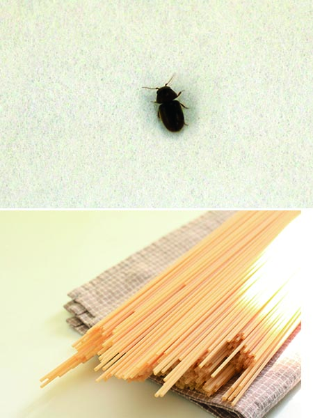「シバンムシが繁殖するのは、畳や、パスタなどの乾燥食品です。雑食性の虫で、ビニールやプラスチックなどもかじるうえ、開けた穴は小さく、なかなか気づきません。食品自体は滅菌などの処理がされていますが、パッケージをかじって入り込み、繁殖することもあるため、処理済みの乾燥食品でも油断できないのです」