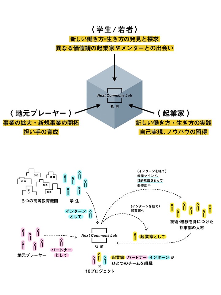 「弘前市では、地域おこし協力隊の制度を活用する形で、起業を志す方をラボメンバーとして募集しています。都市部の人材となるローカルベンチャーを育成するため、移住・起業のプラットホーム(環境基盤)となる受け入れ組織を拠点に、地域資源を活用した起業プロジェクトを展開していく形です」(肥後氏)