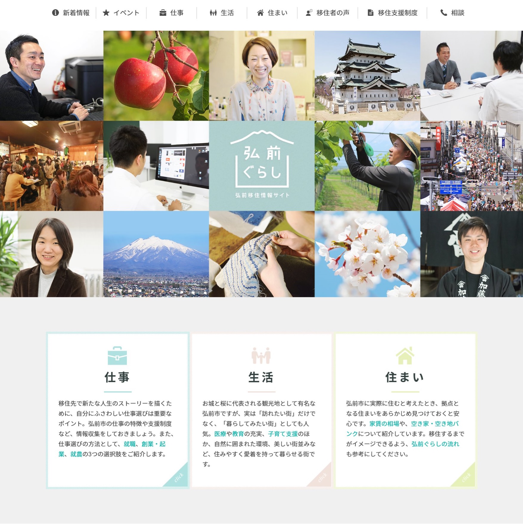 市の運営するUJIターン向け情報サイト『弘前ぐらし』をみても、「仕事」「生活」「住まい」のカテゴリーで様々な補助や支援策を打ち出している。