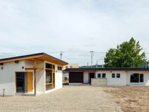 北海道・十勝地方の林業が盛んな足寄町の中心部。町役場から歩いて5分ほどの場所に、新しい〝村〟ができた。手に職を持ち、ものづくりでの起業を目指す移住者を呼び込み、地域の人とかかわりながら暮らしてもらう新しい拠点「はたらくものづくり村」。若手の地元工務店社長が地元の仲間と構想を練り上げ、地域住民と移住者が多目的に使えるコミュニティスペースと、単身で使いやすい移住者向けシェアハウスの平屋2棟を新築した。今後は家族向けの生活棟や広場も整備される。
