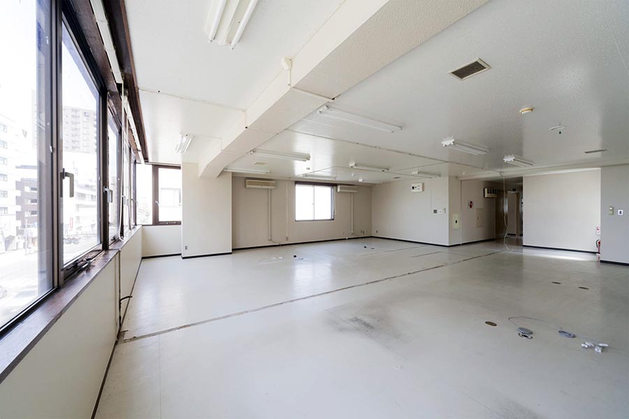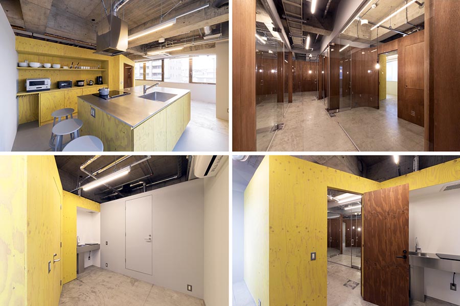 たとえば、304号室は共用廊下に面した1室がガラス張りになっており、その部分を貸すことができる。使用方法としては会議室やポップアップストア、ギャラリー、教室、美容系のサロンなどだろうか。許認可が要るような業態は難しいだろうが、それ以外ならいろいろできそうである。もちろん、外の人に貸すだけではなく、週末の副業として自分で使う手もある。3階にはこうしたオフィスが4室あり、広さは20~30m2ほど。賃料は7~8万円(共益費含む。以下同)となっている。