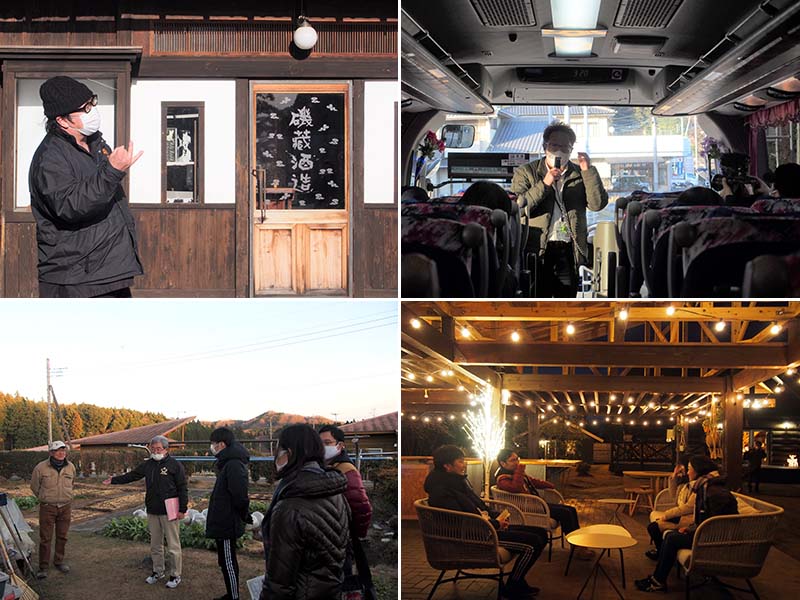 ツアーは、国の伝統的工芸品にも指定される笠間焼の店舗が集うギャラリーロードからスタート。ギャラリーをワークスペースにリノベーション中の施設で、笠間市についての説明を受けた後、シェアサイクルで自由行動。まずは思い思いに笠間市を自分たちの五感で感じる。笠間市有数の観光スポットである笠間稲荷門前通り周辺を散策後、バスに乗り込み同市稲田地区へ。当地で酒造りを行う磯蔵酒造を訪ね、酒蔵見学をしながら五代目蔵主の磯貴太さんから話を聞いた。磯さんは元々東京でアーティスト活動をしており、その後家業である酒造りを継ぐために笠間市に戻ったため、参加者たちに都会目線での笠間の魅力を語れる。地元の米を使って酒造りを行う理由などを聞いた参加者の中には、つい1本購入してしまう参加者も。造る背景と造る人の顔を知って味わう酒は一味違いそうだ。磯さんは「笠間市はやりたいことをやりやすい街です。でもやりたいことや良し悪しは人それぞれなので、笠間市が良いも悪いも言えません」と、参加者を前に語りかけた。決して良い面だけを見てもらうのではなく、事実を知った上で笠間に移住してほしいという思いが見える。