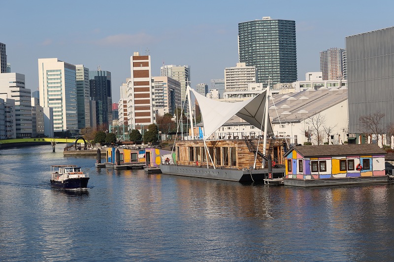 宿泊料金が1室で8万円台からということもあり、実際の利用者は当初40~50代が多かったが、最近はSNSで情報を得たという若い層も増えている。思っていた以上に、水辺が好きだという「水辺ファン」が多いそうである。利用目的としては大きく2種類あり、ひとつは東京観光でせっかくだから大好きな水辺に泊まりたい、あるいは水辺のような変わったところに泊まりたいというもの。もうひとつは天王洲に滞在したいというもの。