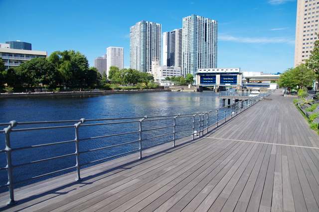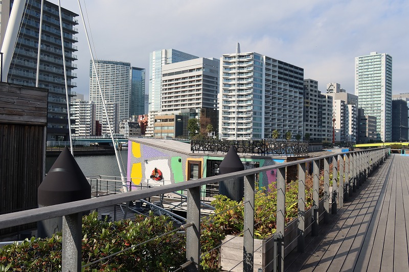 水辺に立地する恵まれた環境を意識したのだろう、公園、広場や街路などの自然を感じる作り方にこのまちらしさがあり、特に島を取り囲む板張りの遊歩道・ボードウォークは他にない憩いの場。海外の海辺のまちを彷彿とさせる、開放的で明るい空間になっている。水上ホテル・ペタルスもそんなボードウォーク沿いにある。