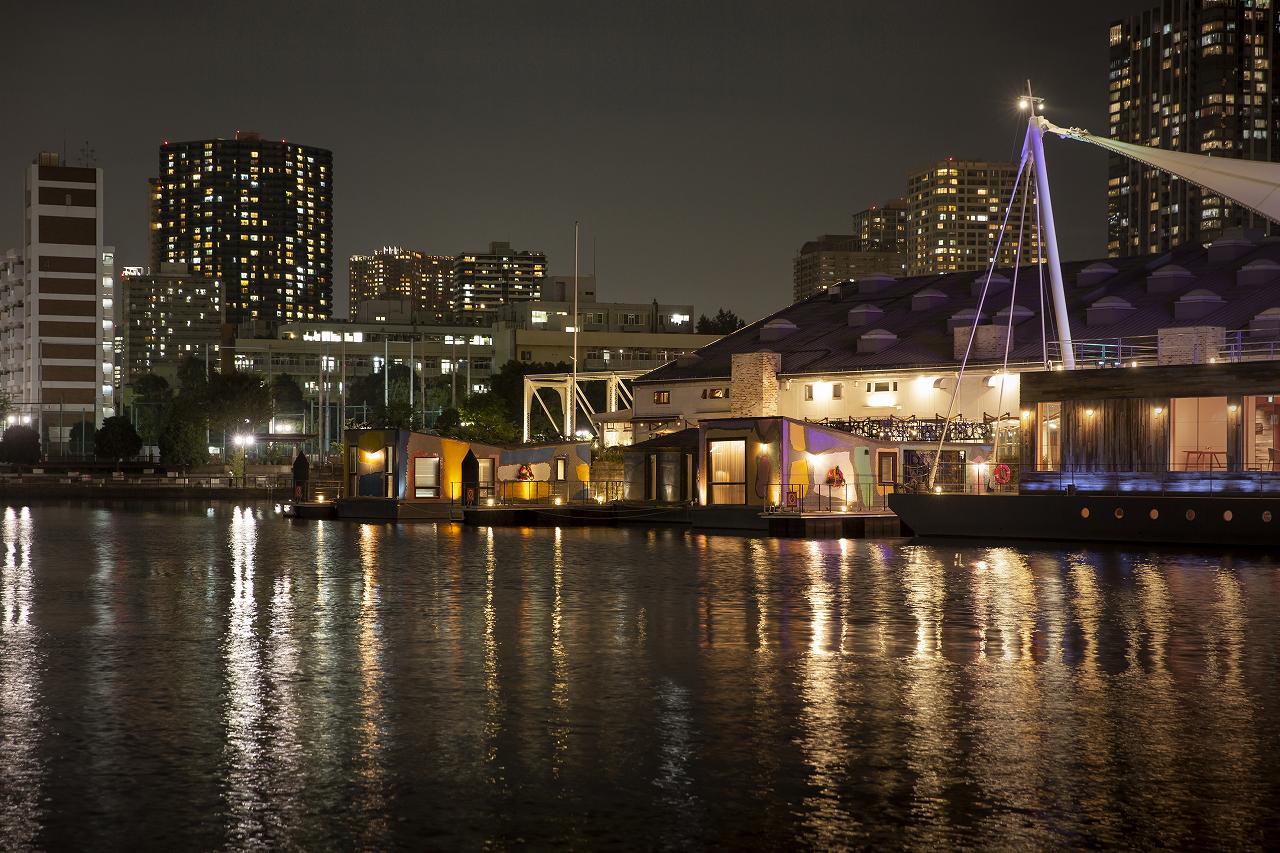 だが、2019年に旅館業法が大きく変わったことなどから宿として使う手が現実的な選択として浮上、利用できることになったという。「それ以前から泊まれないのですか?というお問合せは多くいただいていました。ことに2019年以降はそうしたお問合せが目立って増え、オープンしたときにはやっとオープンしたと言われました」と寺田倉庫株式会社 イベントプロデュースグループ・菊池亮太氏。水辺の好きな人たちからは長らく宿泊したいと望まれていた場所だったわけである。