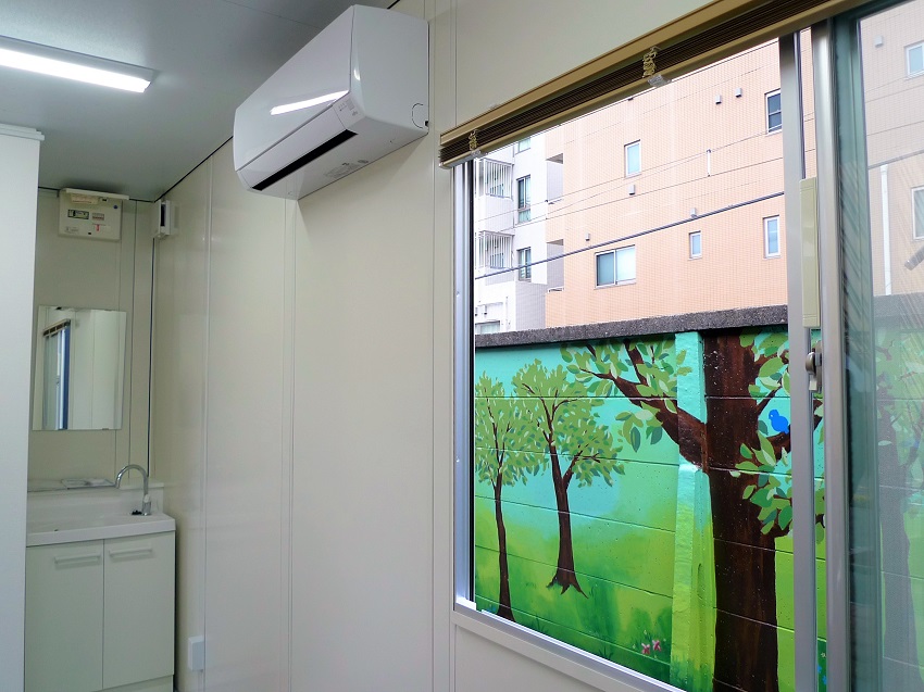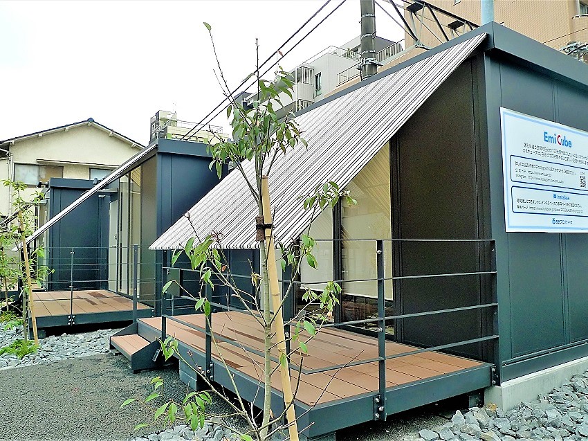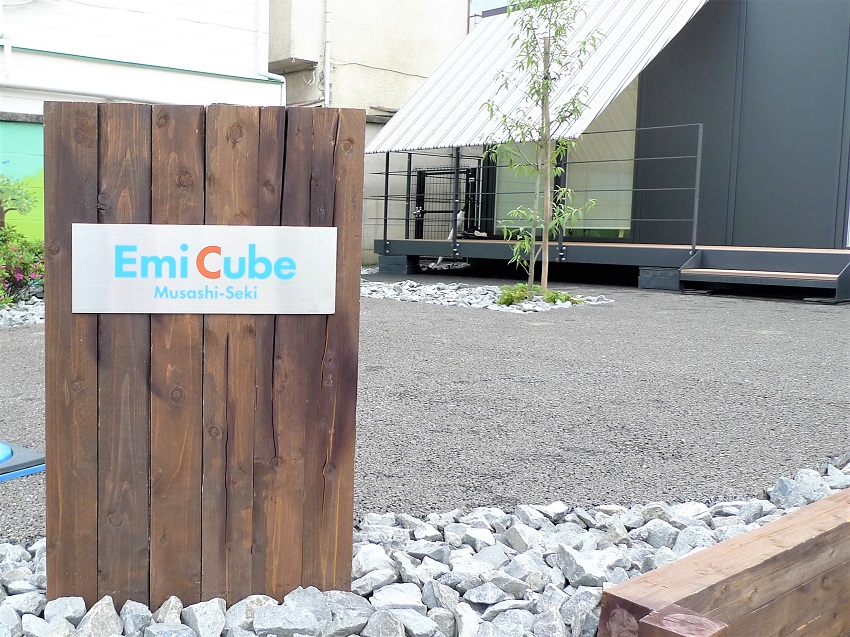 「エミキューブ」事業では、ユニットハウス製造会社の三協フロンテア株式会社の製品を使用。2020年12月14日に基礎工事を開始。翌年1月にユニットハウスを設置し、内装、外構と工事が進み、1月29日に完成した。工事期間は約1ヶ月半と短期間で終えることができたのは、ユニットハウスならではといえるだろう。ちなみにユニットハウス全3室の設置に要した時間は約3時間という。