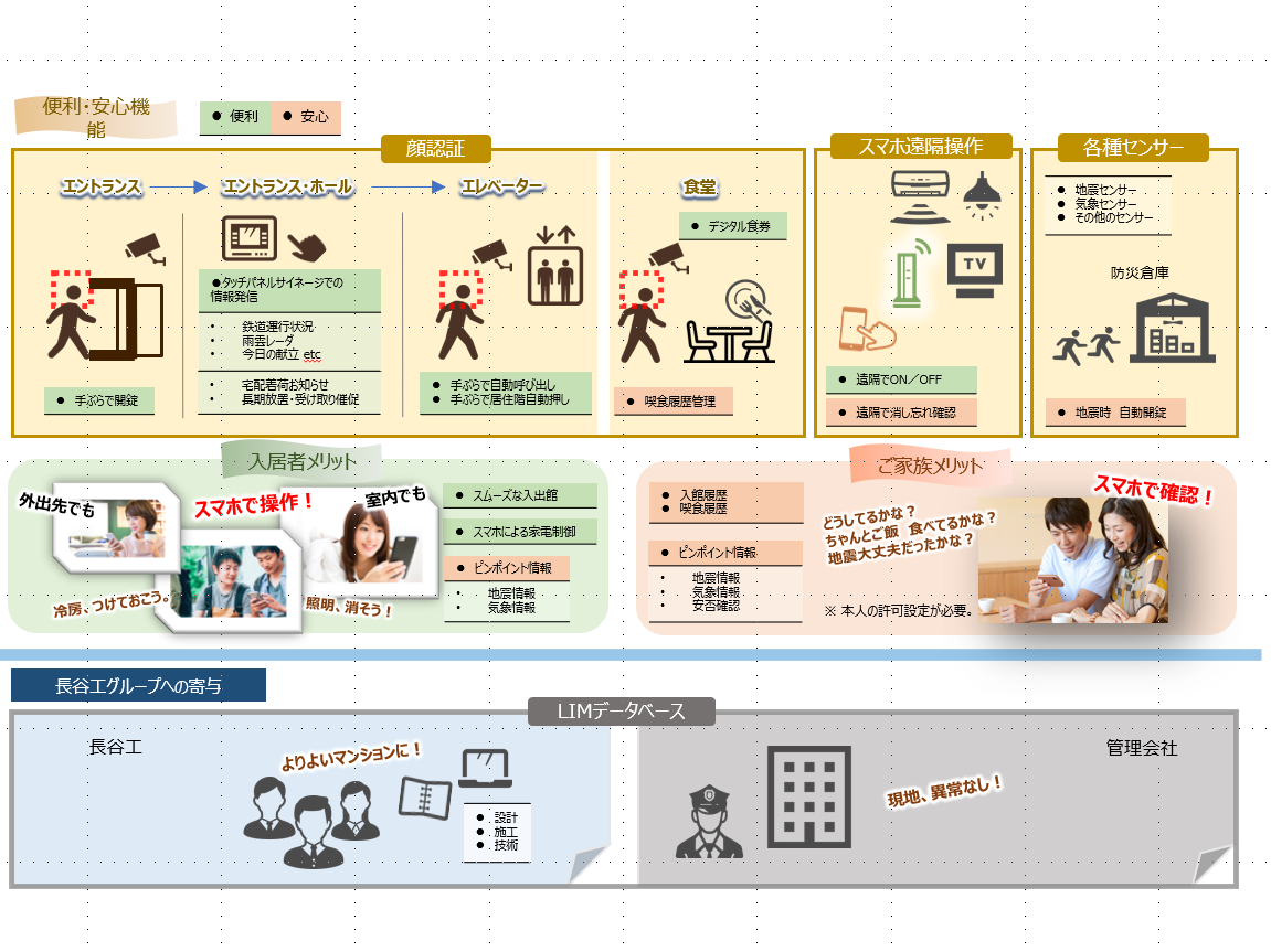 「実は、マンション設計段階のICT化は以前から進めており、CADに代わり建物の形状や空間構成に加え、部材の数量・材質・仕様などの属性データも含めて設計できるBIM(Building Information Modeling)には十数年前より取り組んでいます。ここにFeel I Residenceのような入居後のセンサー情報やライフログなどの暮らし情報LIM(Living Information Modeling)を蓄積し活用していくことで、全体像をとらえた新たなサービス展開が可能になると考えています」(野世溪氏)