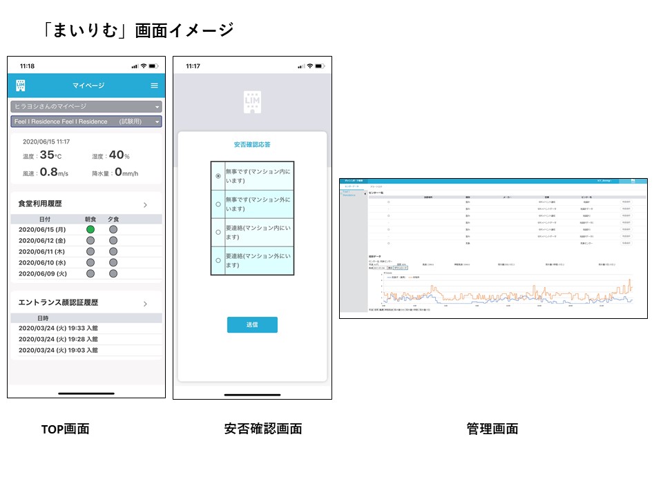 もう1つFeel I Residenceでは、災害対応でもICTを活用している。同マンションでは、地震センサー、気象センサーなどを有し、大きな地震の際には防災庫の自動解錠を行う。また、独自開発したアプリには安否確認ができる機能を有し、入居者が地震発生時にプッシュ型で行う安否確認応答をすぐさま入居者の保護者が確認できるようにした。