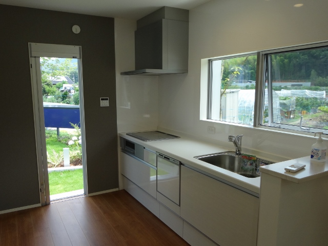 室内はすべて引き戸で、玄関からフラットになっており、車椅子になっても不自由なく生活できる広さを確保。リビングの窓は大きいので明るく、外の緑の景色を楽しむことができる。ビルトインの食器洗い乾燥機や、3つ口のIHコンロをもつシステムキッチンなどの設備も充実。浴室は1618サイズの浴室なので、ゆったりと手足を伸ばすことができるのが嬉しい。