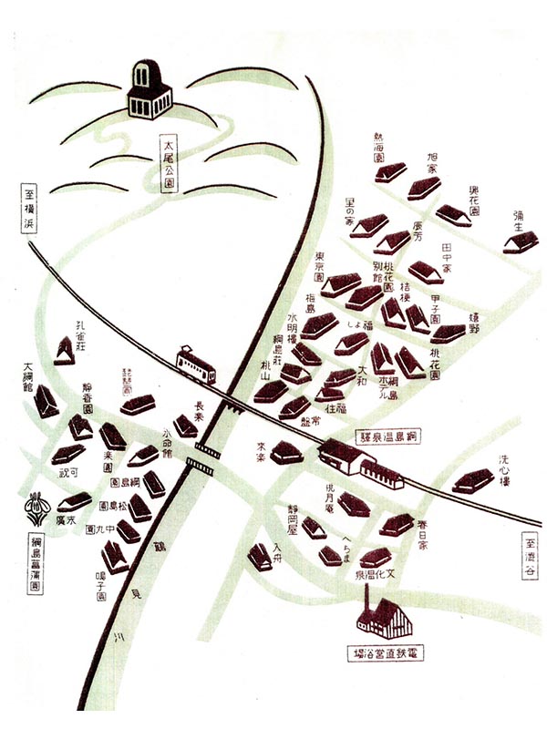 31年からは田園都市課が経営を担当するようになり、入浴客数も急増し「箱根に次ぐ」客数を集めることになったという(『港北百話』)。34年頃には「住宅もネオン街も軒を並べている」という状況で、旅館数も40軒ほどにまで増加した。