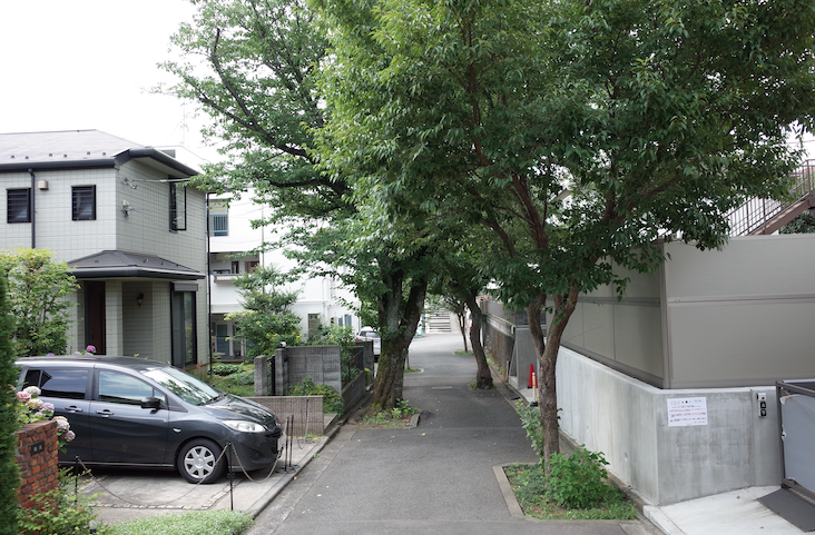大倉山の南側の麓には農家らしき家もあるが、商店街(バス通り)の南側の平坦地にある住宅地は普通の郊外中流住宅地である。