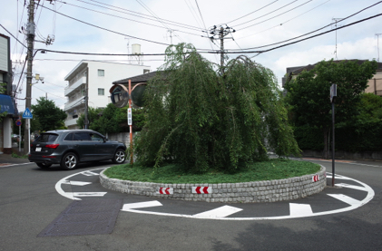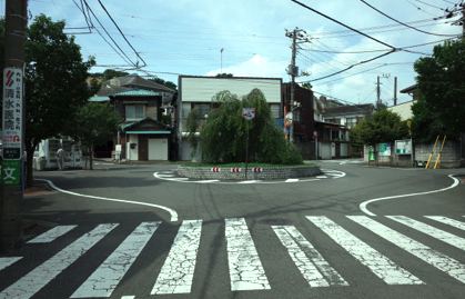 坂を下っていくと田園調布と似たような半円状のロータリーがある。錦ヶ丘の南北東の三方から坂を下ってきた場所である。本当ならロータリーを駅前にしたかったのではないかと想像するが、どうなのだろう。