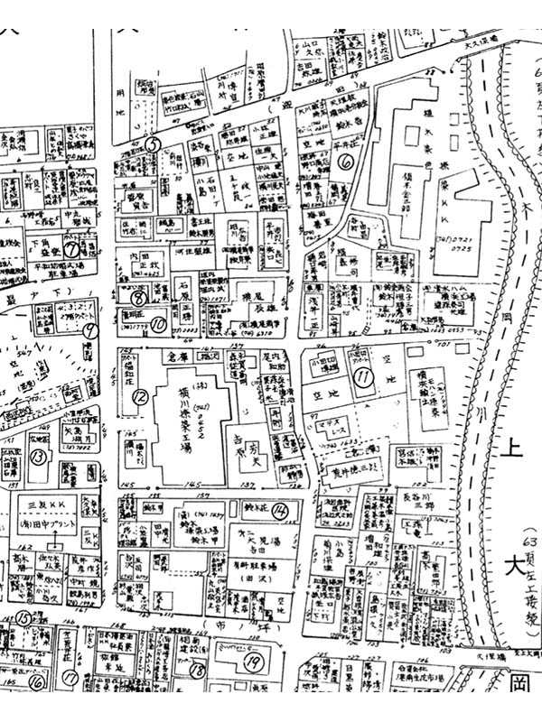 市電の終点であった弘明寺から人力車に乗って客がやってくるようになった。この久保橋周辺が戦前の上大岡の中心で、その後できる上大岡駅を出て久保橋を渡ると花街という立地だった。