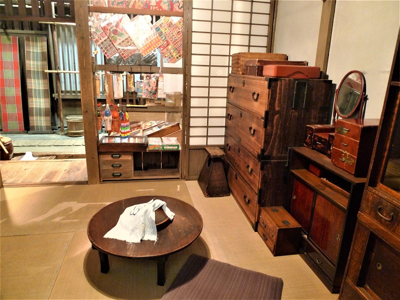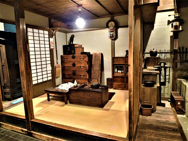 1階では、関東大震災(1923年:大正12年)前、大正時代の東京・下町の街並みを再現。ほぼ実物大に再現された商家の建物と長屋が立ち、室内にはさまざまな生活用具が展示されている。