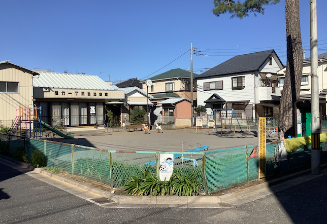 また団地の中に自治会館があり、これはおそらく建物が古いまま増改築されているようだった。前には公園があり、住宅営団の前身であり、庶民のための田園都市的な住宅地をつくろうとした同潤会の流れを感じる。