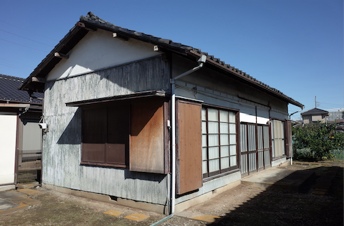 ほぼ古いままの状態で見つけた1戸は1世帯用だが、もう1戸は2世帯用であり、引き戸の玄関が2つ並んでいる。