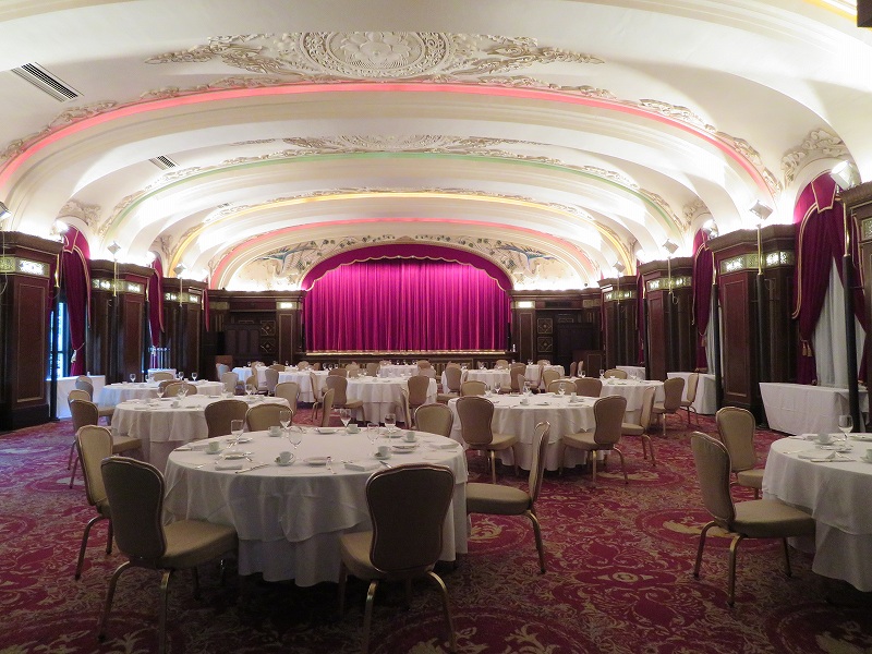 豪華な城郭風建築の外観にクラシカルなアール・デコ様式(1910~1930年代に流行した直線的、機能的で実用的なスタイル)の内装、調度品が置かれた建物はちょっとおしゃれをして訪れたい雰囲気。メインダイニングはフレンチだが、和食、鉄板焼きが楽しめる別棟もある。
