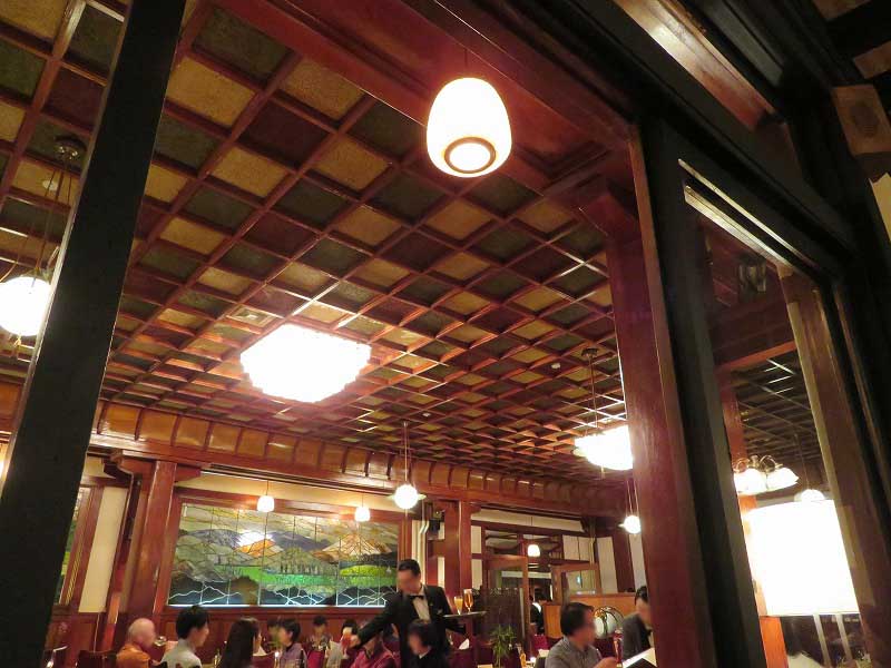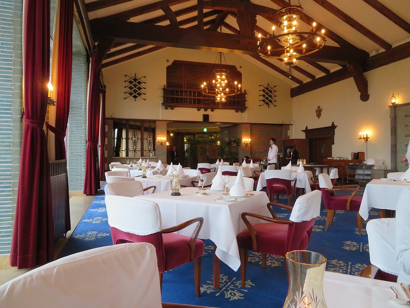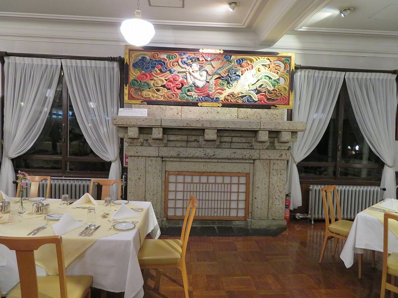 本館であるアルプス館は、昭和11(1936)年築。高い折り上げ格天井のメインダイニングもこの建物内にある。客室は床の間のある和洋折衷の部屋や猫足のバスタブがあるなどレトロな雰囲気があるそうだ。残念ながら宿泊した部屋は異なる棟にあり、ごく普通の部屋でいささかがっかりしたことを覚えている。
