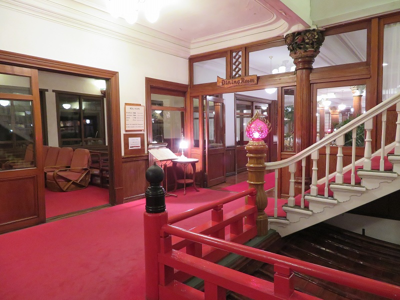 泊まったのは明治24(1891)年に建てられた本館45号室。本館は唐破風の玄関が印象的な木造洋風建築で1階がフロント、ロビーとなっており、2階が客室。非常に堅牢な建物で、関東大震災でもガラス一枚割れなかったという。
