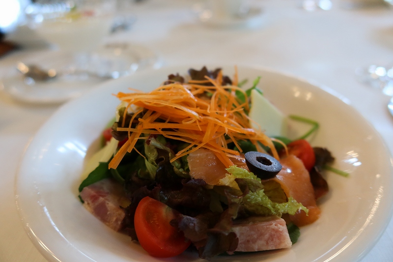 ダイニングルームは200畳の広さがあり、かつてはダンスパーティも開かれたという象徴的な空間。供されるのはフレンチだが、特筆すべきは現代的で軽やかな料理であるという点だ。クラシックホテルのなかには伝統的な料理を売りにしているところがあり、メニューも限定的。それはそれで魅力ではあるものの、時として重く感じたり、単調に思えたりすることもある。ところが、同ホテルではクラシカルな空間に現代の味という驚きがある。オールドノリタケを使ったテーブルセッティングも含め、食事だけのために来てもいいと思ったものである。