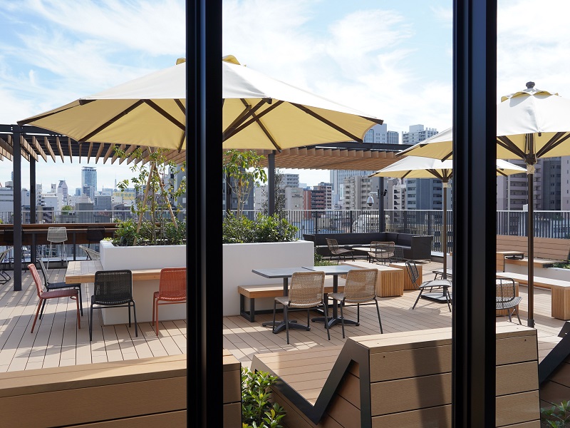 「屋内、屋外ともに気をつけたことは、一人用の席を設けること。マーケット調査を見てみますと特に今の20代の方は、一人になる時間が欲しいという声が非常に多くありました。また、屋外テラスにはWELL認証対応として、横になってくつろげる椅子もあります。仮眠が仕事の効率を高めるというお話もありますし、この環境を活用していただけたら」と高須賀さんは語った。