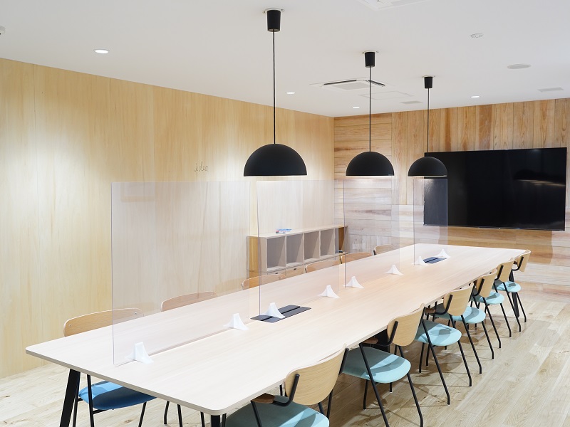 会議室は、各オフィスからアクセスしやすいように中央部分に配置。1時間単位で利用でき、専用アプリで予約ができる。