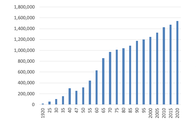 1902年と19年では人口が4倍近く増え、1925年の国勢調査では産業別人口のうち農業が11%に対して工業が37%となるほど工業都市化が急激に進んだ。