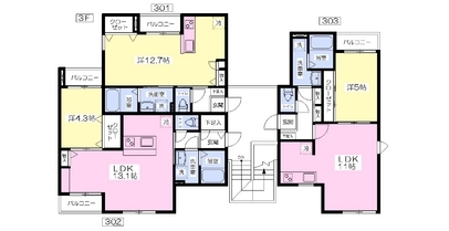 最上階角部屋以外で音に悩まされにくい部屋を選びたいと考えるのであれば、自分の住戸だけなく、両隣の間取りも分かる平面図をチェックしたい。多くの人は自分の部屋の間取り図だけを見て満足してしまうが、音は自分の部屋の外から来る。であれば、周囲の部屋との関係が大事なのである。