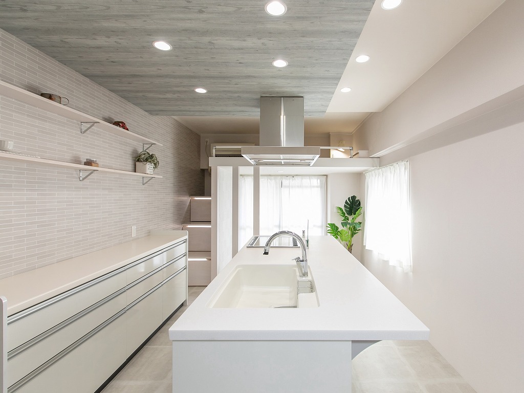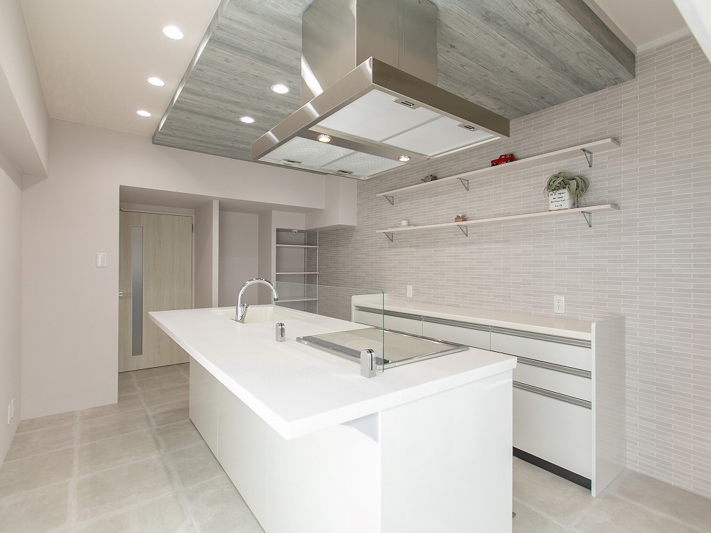真ん中にアイランドキッチンを配置したワンルーム