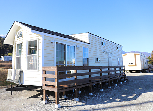 農業を取り入れた「飯島流ワーケーション」の拠点となるのは、農地だった場所に設置されたトレーラーハウスだ。トレーラーハウスは、法律上建築物ではないため、地目の変更手続きが容易であり、災害時には仮設住宅としても使える点に着目した。現在、田園風景が広がる土地にトレーラーハウスが5台設置されており、電気やガスなどの工事を完了して2月中にプレ事業を開始。そして4月以降、本格的に事業をスタートさせる予定だ。